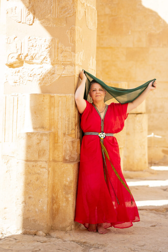 Je reviens d’Egypte, le coeur nourrit par le feu et l’eau, guérit par le souffle des temples et le murmure des pierres sacrées. Là-bas, j’ai traversé des portes invisibles, déposé mes peurs dans la crypte d’Hathor à Denderah, laissé la force solaire de Sekhmet consumer ce qui n’avait plus lieu d’être; et touché l’eau vivante de l’Oséirion à Abydos où mes larmes se sont mêlées à la Source éternelle. Au temple d’Hatchepsout, devant la communauté de mes soeurs Madeleines, Myrrhophores, j’ai été adoubée Prêtresse Myrrhophore, j’ai reçu la croix de Ankh des mains de ma Prêtresse-Mère Unaty, dans le OUI vibrant au DIVIN.